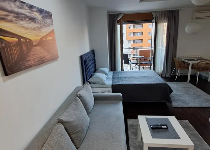 Novi Beograd 지역에 Apartment Premier 2 A Blok 아파트는 베오그라드 도심에서 도보로 약 30분 거리에 있으며 정원 전망이 좋은 테라스도 있습니다. 이 아파트는 1개의 침실과 1개의 욕실이 있습니다.